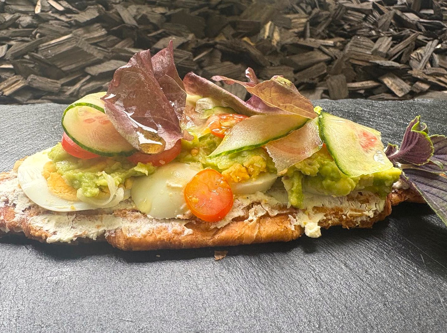 1 Brötchen, 1 Croissant, Marmelade, Butter, Käse, Räucherlachs, 2 gekochte Eier (o. Rührei) & 1 Kaffee